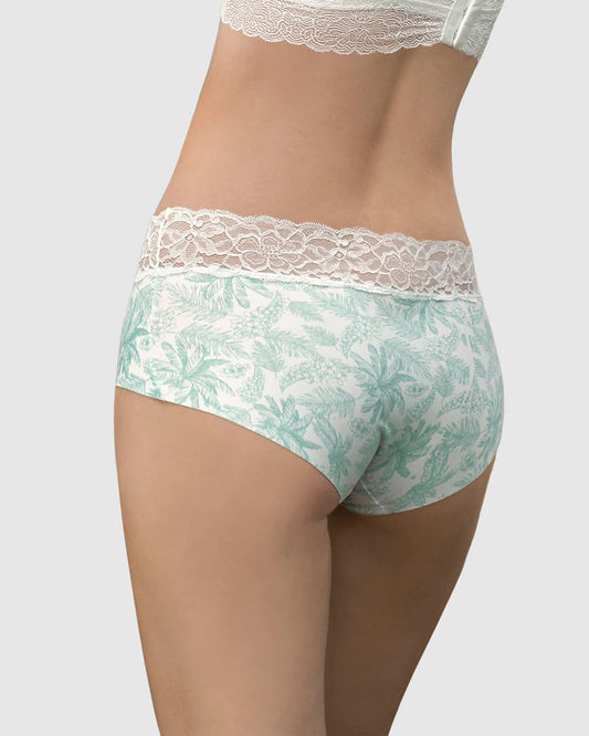 Panty estilo hipster en encaje sexy con refuerzo en algodón