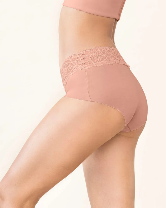 Panty estilo brasilera con laterales y detalle frontal en encaje