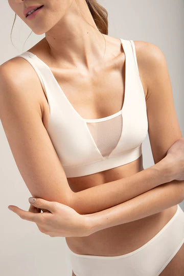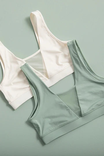 Paquete x2 de brasieres deportivos con doble lycra en copas y tull en escote. Vienen en colores: verde y marfil., Color Verde Y Marfil , Ref. 1499022