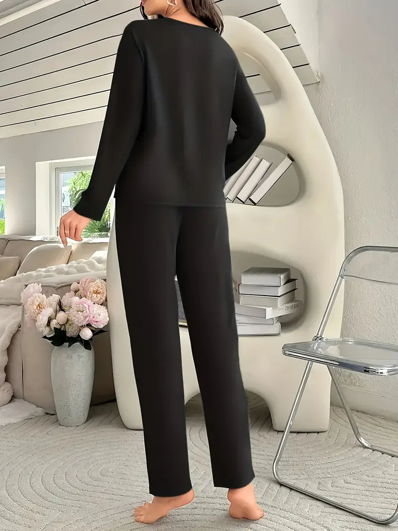 Conjunto de pijama Hello Kitty de dibujos animados lindo para adolescentes, franelal de manga larga con cuello redondo,ajuste holgado y pantalones largos de descanso